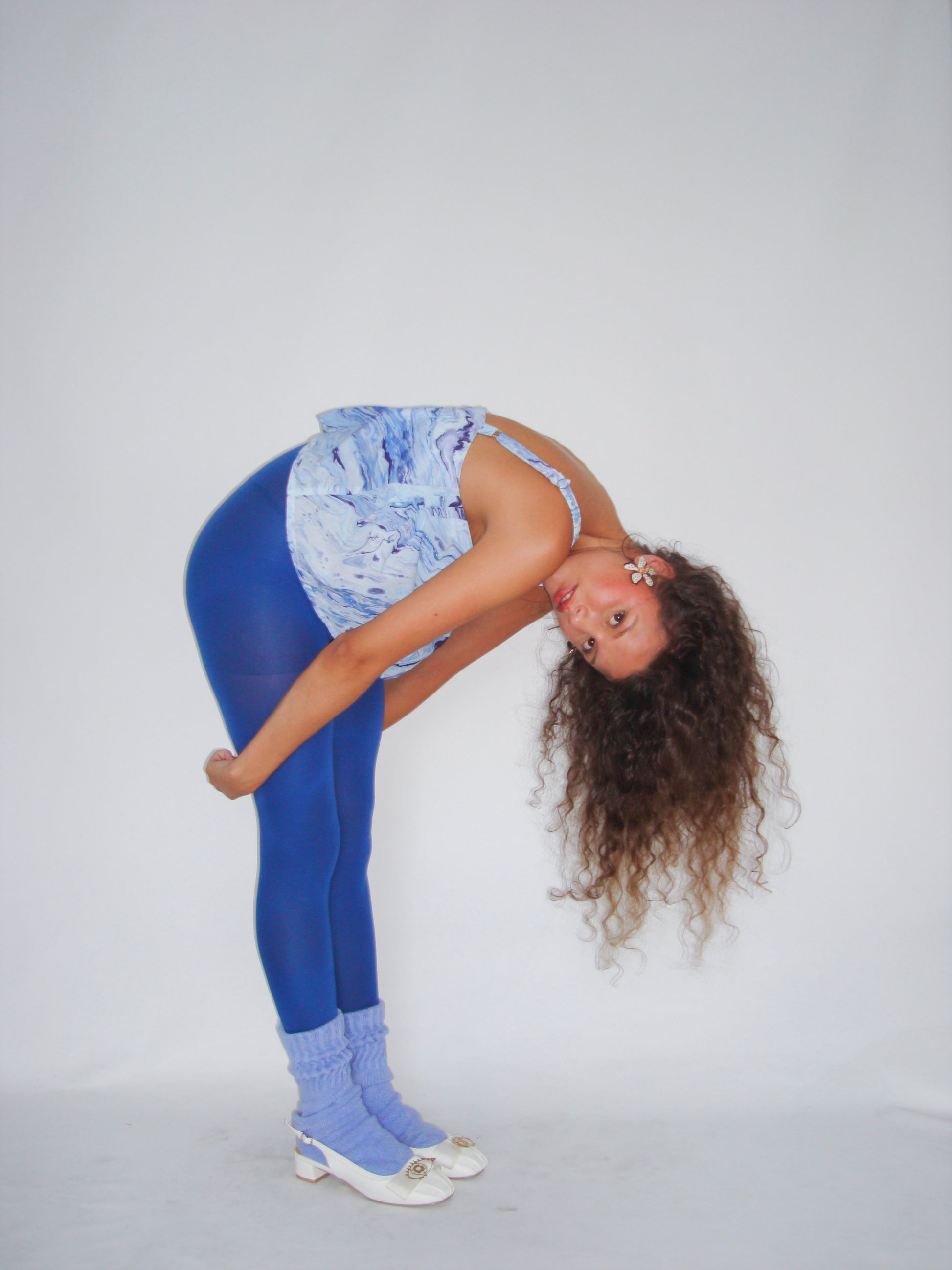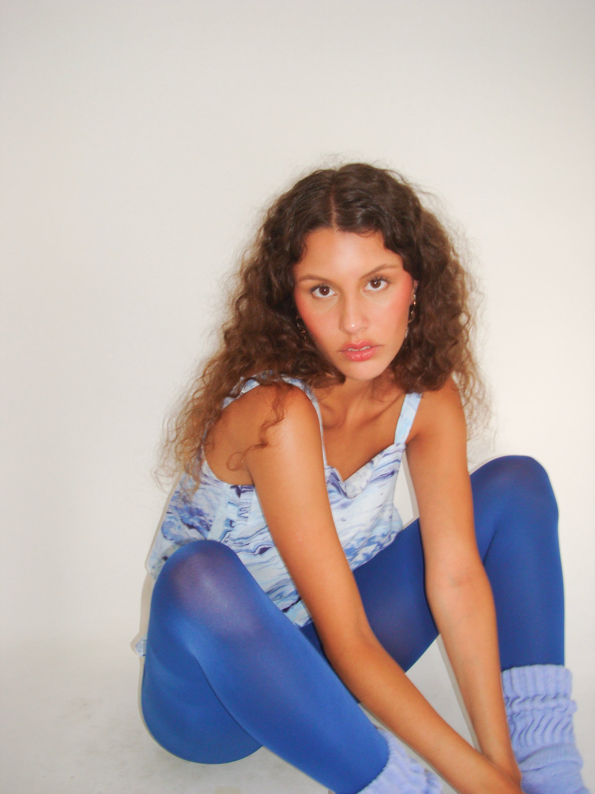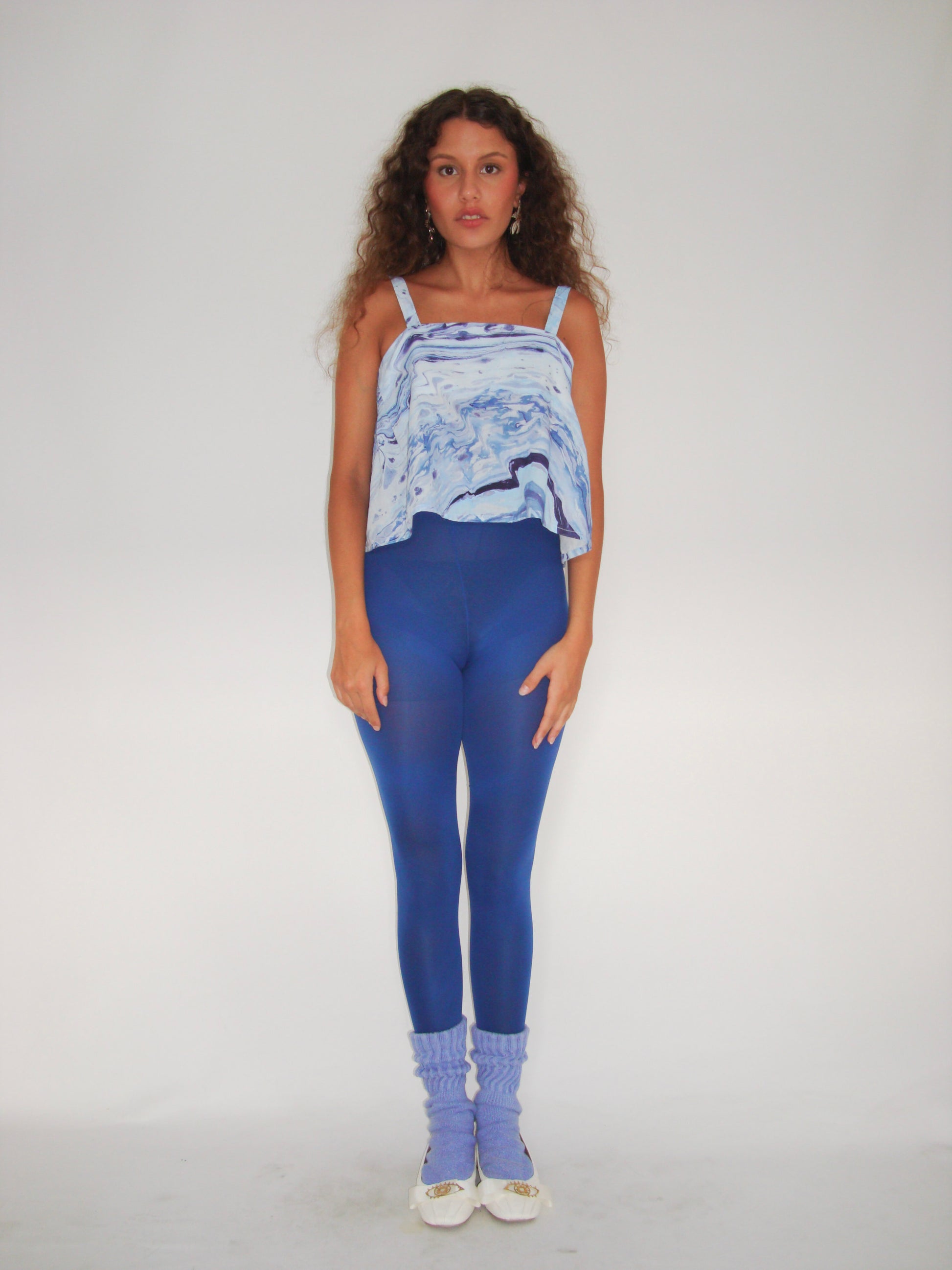 This top features a had done Suminagashi design- a form of aqueous surface design. This method originated in Japan as early as the 12th century.