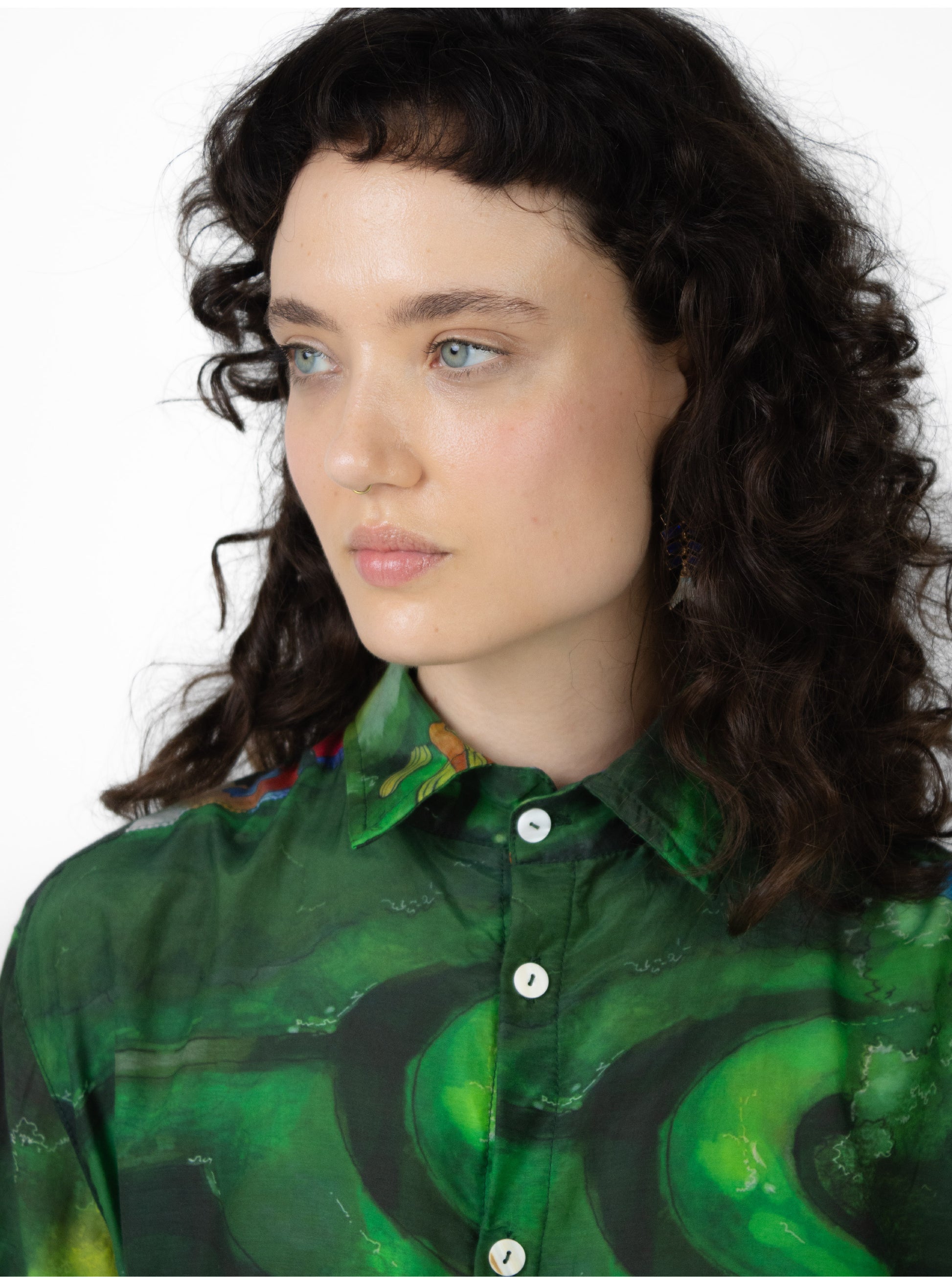 The classical collar shirt has been updated with an exaggerated oversized silhouette and bold, custom designed print.